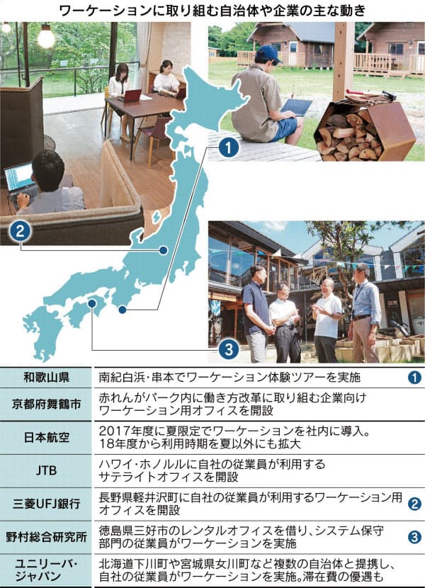 少子化が深刻な地方にとってワーケーションは都市との交流人口を増やすチャンスです。11月には誘致に熱心な自治体が協議会を発足させる予定です。和歌山、長野の両県のほか、京都府舞鶴市や北海道北見市など40を超える自治体が参加する見通しです。